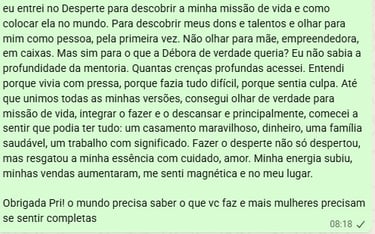 Minha jornada começou com o desejo profundo de entender a vida, meus talentos e como podemos viver de forma plena e alinhada com nosso propósito.